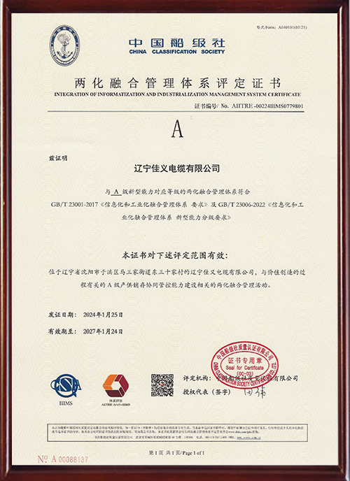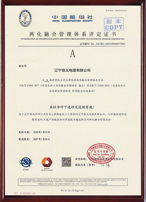 • 两化融合管理体系评定证书