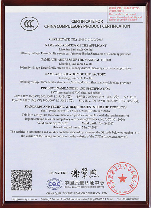 • 中国国家强制性产品认证证书
